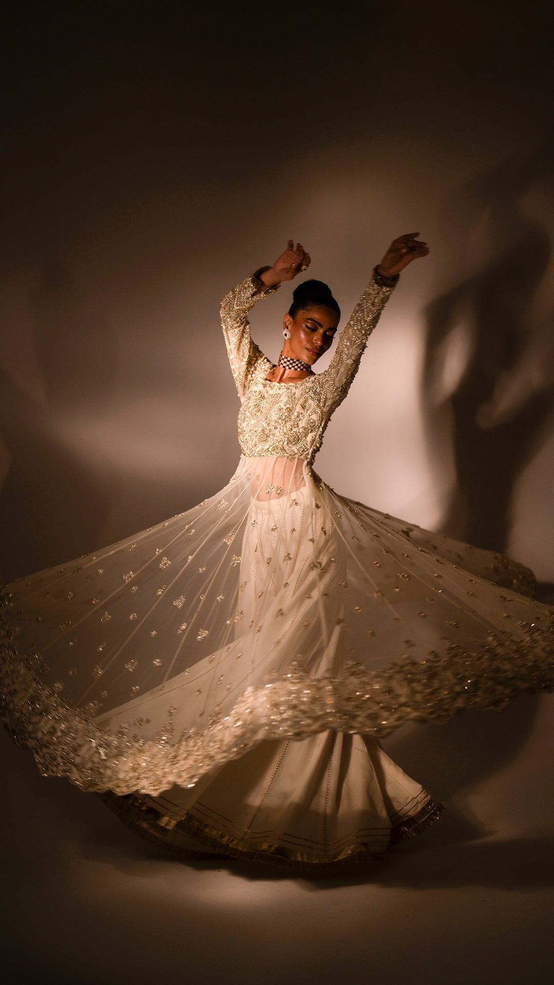 - Pishwas: Heavily hand embellished net pishwas with huge flare